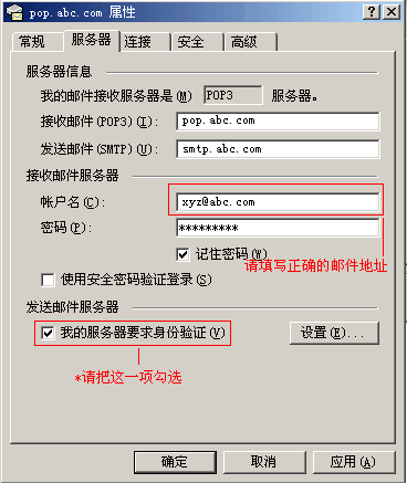 收发信件服务器:pop.abc.com